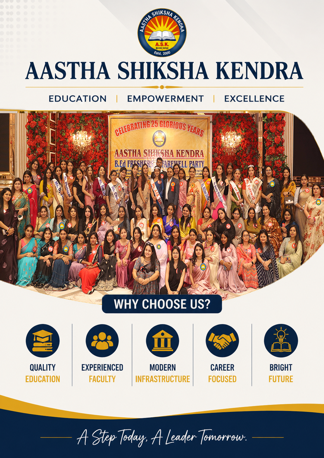 Established in 2000, Aastha Shiksha Kendra is a premier institute which aims to provide quality education services to the upcoming generation of India. It's UGC & NCTE Approved and is valid for Govt. and private teaching jobs all over India. Since the inception of ASK, it has been making constant endeavour to provide education compatible with national and international standards and requirement. The institute has in its mission to provide with quality education services to the upcoming new generation of India.